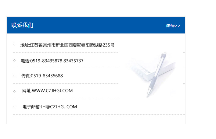 地址:常州市新北區友邦商務大廈1幢16、17層  電話:0519-85101652  傳真:0519-85112595  郵編:213022  網址:www.cz-jiayue_cn.hhblg.com  郵箱:xiajifengaa@163.com